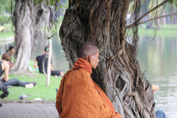 Buddhist monk meditating: